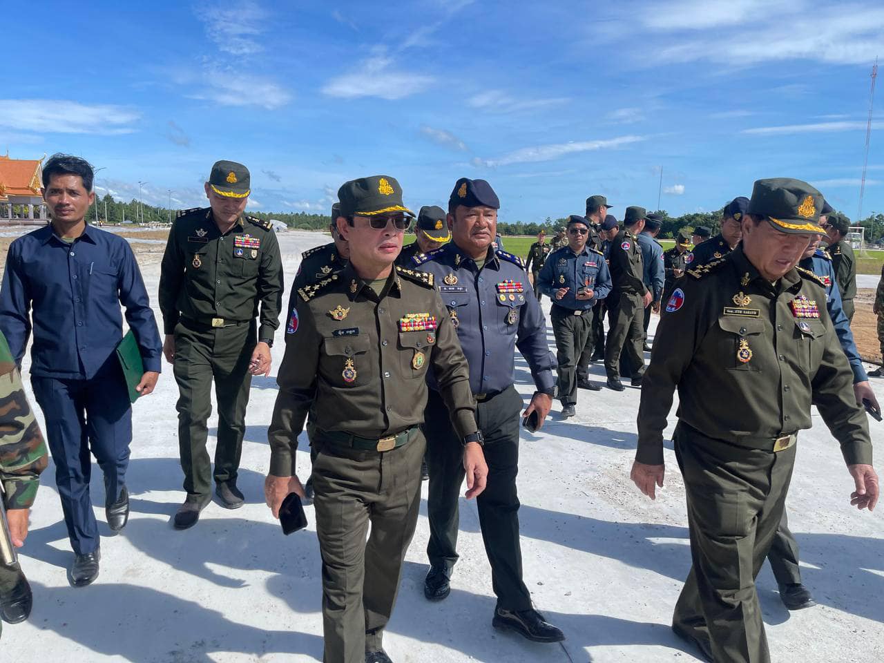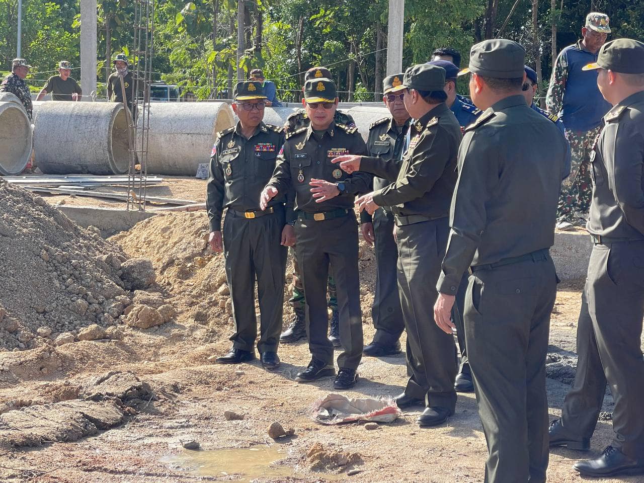 On the morning of 6 November 2024, His Excellency Lieutenant General Moeng Ponlok, the Director General of the General Department of Logistics and Finance, Ministry of National Defense, the Chairman of the Sub-Committee of the Inter-Ministerial Committee, joined the delegate inspecting the site being prepared for the joint exercise between the armies of Cambodia, Laos and Vietnam at the "Phnom Chum Sen Uaeng Royal Gendarmerie Training Center, located in Cha Rork Kov Village, Peam Commune, Samaki Meanchey District, Kampong Chhnang Province. The delegate was led by His Excellency General Ith Sarath, Deputy Commander-in-Chief, the Chief of the Joint Staff, and Deputy Permanent Chair of the Inter-Ministerial Committee.